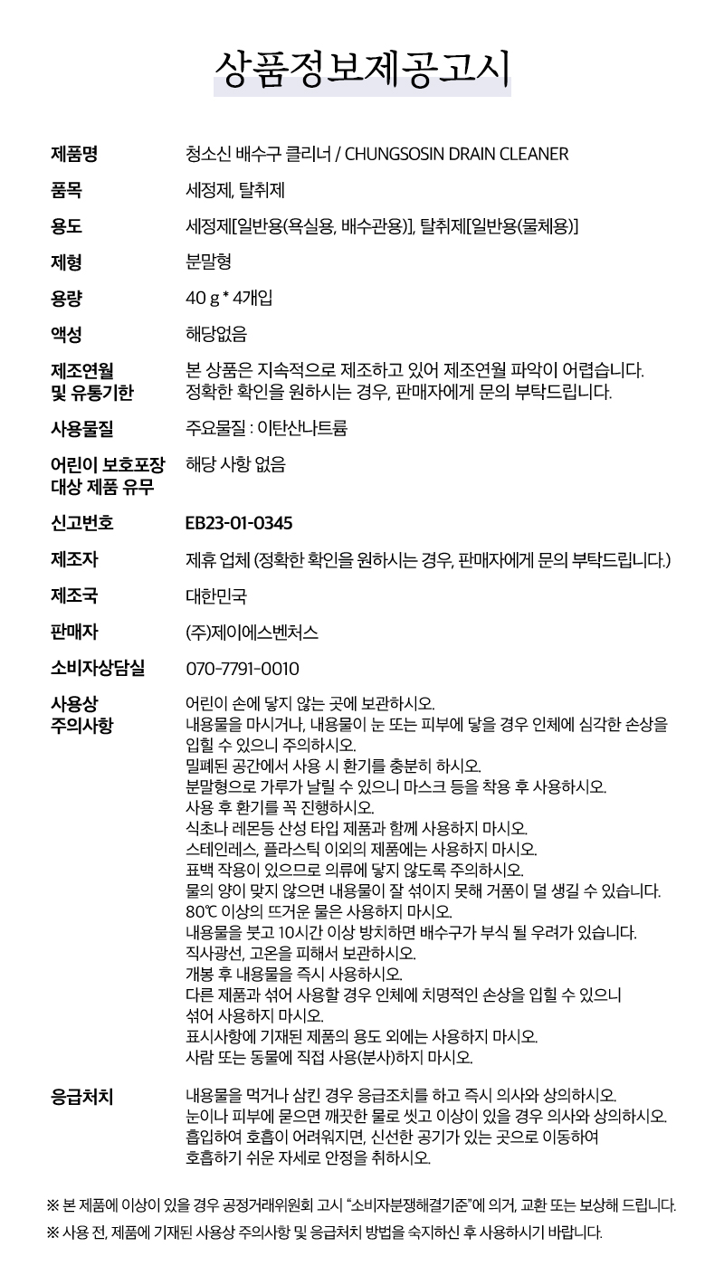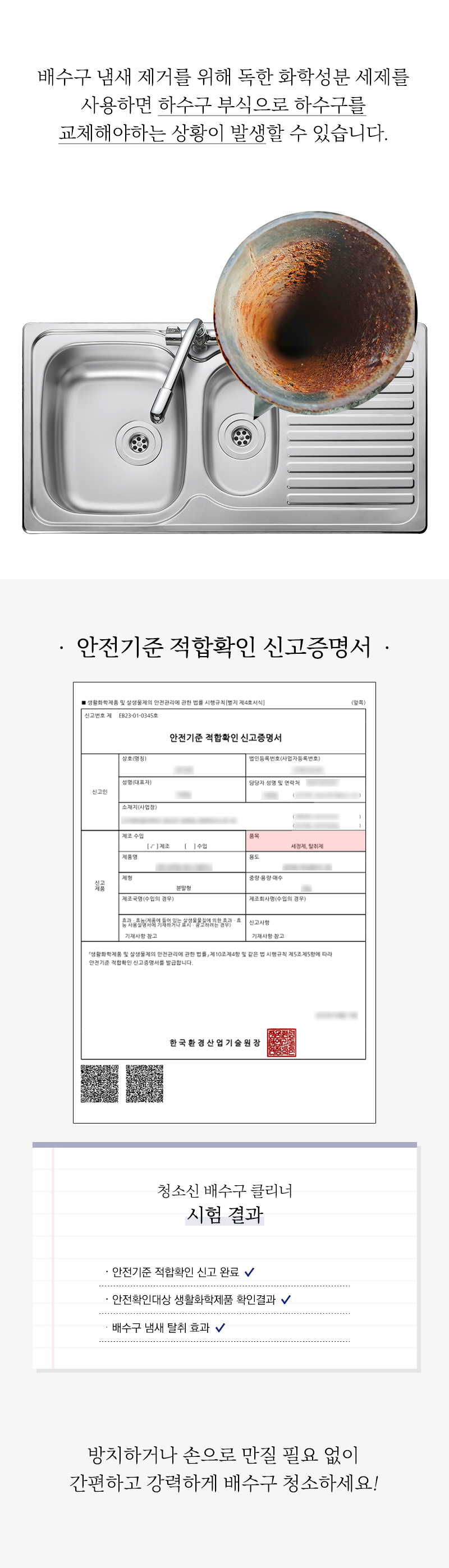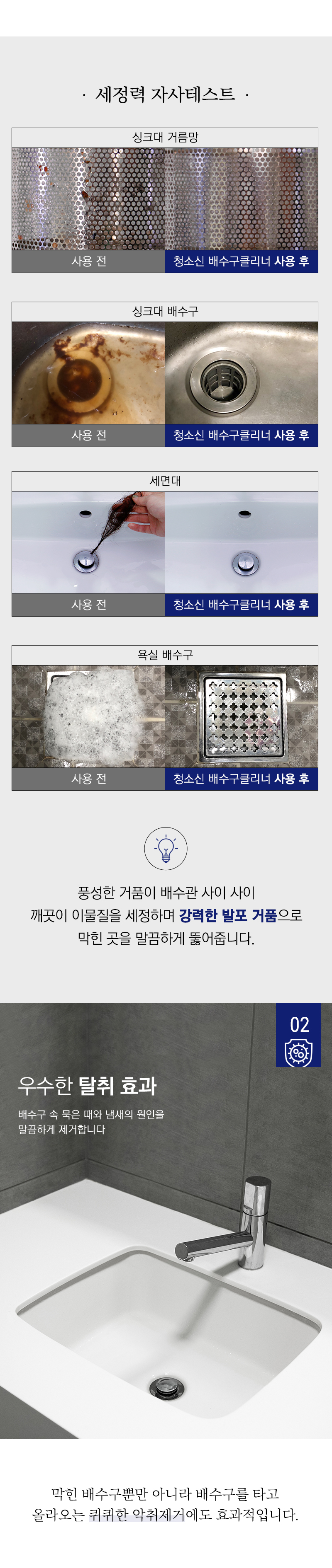 사용후기00000 구매하기 구매수량 옵션 선택 [BEST] 청소신 배수구클리너(3+1행사) (66%할인) 청소신 배수구클리너(1+1행사) (56%할인) 청소신 배수구클리너 단품 총 상품 금액 0 원 장바구니 바로 구매